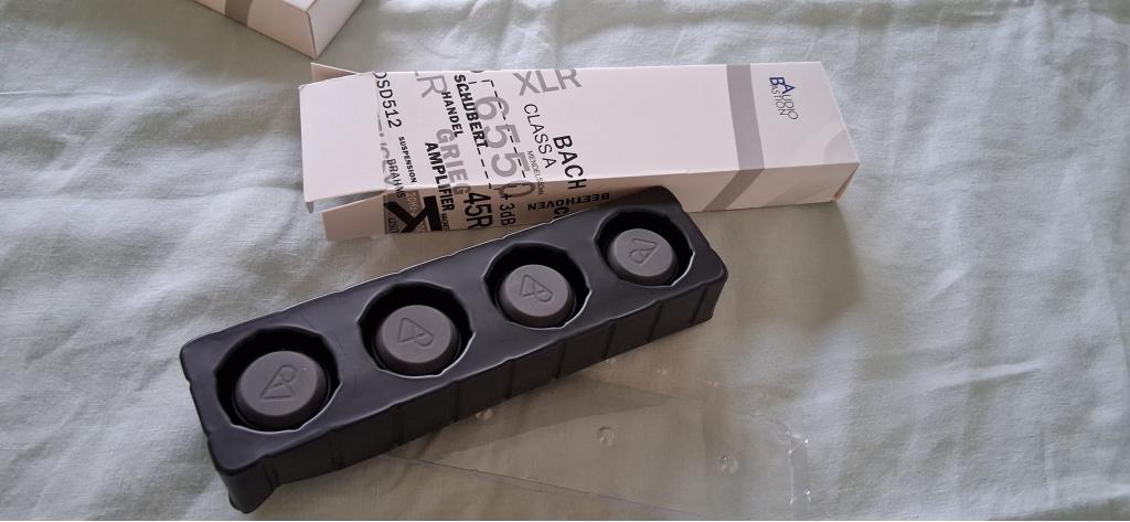 These stands for HiFi equipment and speakers effectively absorb the vibrations of your equipment. They are composed of a silicone pad, encased in a composite resin part, all held by an aluminum alloy structure.