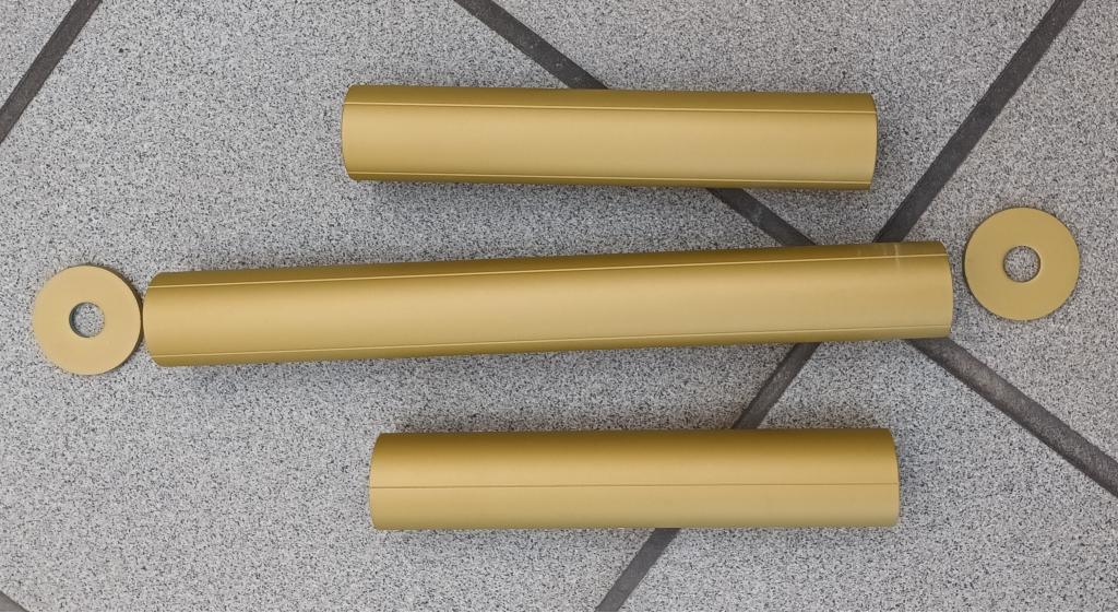 Die vergolden Abstandshalter sind lackierte Abflussrohre.