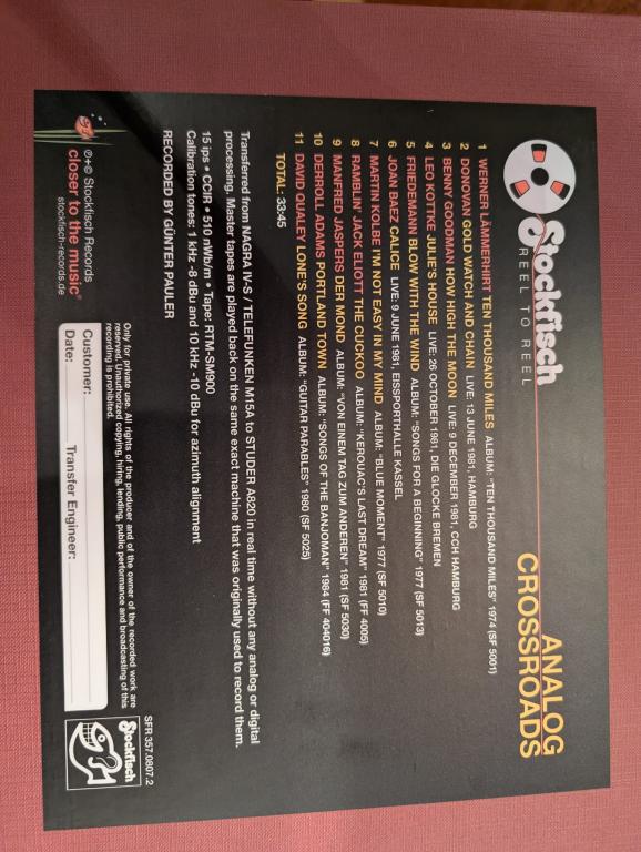 "Analog Crossroads" (Reel-To-Reel Vol.1) enthält eine Zusammenstellung von 11 Aufnahmen aus dem Band-Archiv: Von Leo Kottke über Joan Baez und Martin Kolbe bis zu Benny Goodman.