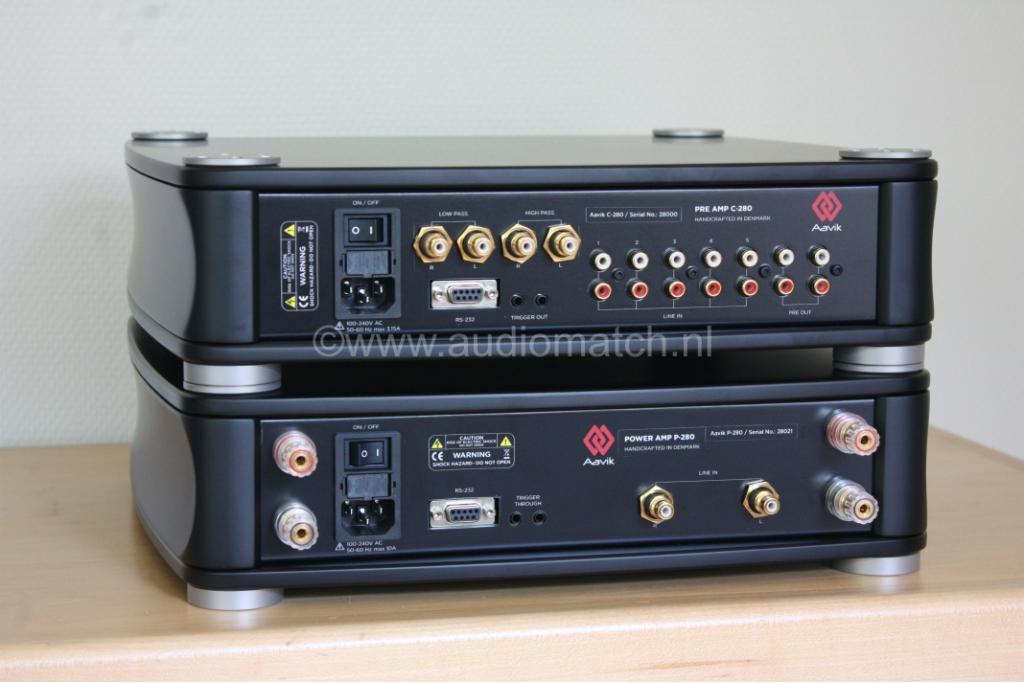 - Aavik Acoustics C-280 Preamplifier with optional active crossover module, Very silent and natural sounding preamp with five analog inputs (RCA), two pre-outs and the optional high en low pass outputs. In perfect condition with original box, remote and accessories. NP 16000 euro (12000 euro + 4000 euro (crossover module). 12 titanium balls included.