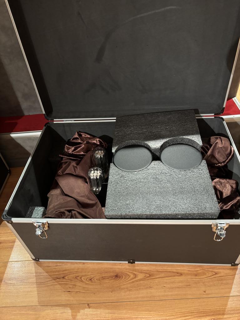 Leather color is brown with dark brown stitching. Both monoblocks are in overall good condition, but do have little imperfections on the outer cabinet - see pictures. The sale includes 2 original ABSOLARE flight-cases and will be carefully packed with a 2nd package surrounding for international shipping. 2 pairs of used NOS 6sn7-tubes and nice PSVANE 845 tubes will be included. These monos amps rank amongst the most authentic & 3D-realistic sounding tube-amplifiers.