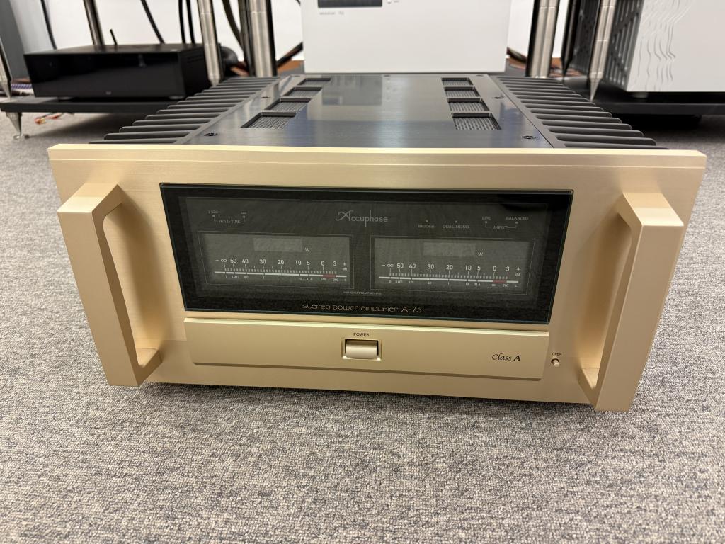 We are selling Accuphase A-75 stereo amplifier. Comes from first owner, it is in good condition (minor scratches are visible on top part of the amplifier, front is as new) and comes with original box. Price does not include shipping costs.