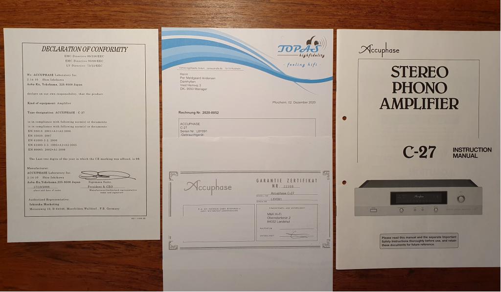 I am selling my Accuphase C-27 phono stage. It is in absolutely perfect condition and very well maintained, with beautiful glossy wooden side panels. There are no scratches or marks. All original accessories are included, such as the power cable, RCA cables, manual, box, and receipt.