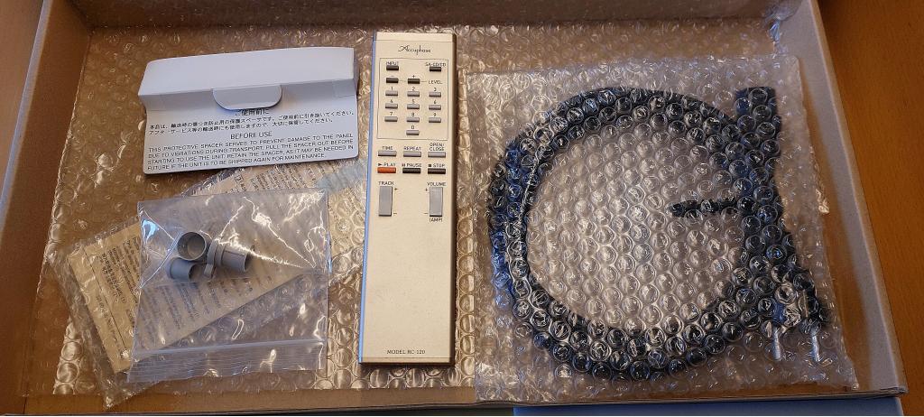 Es handelt sich bei dem o.g. CD-Player selbstverständlich um ein P.I.A. Gerät mit OVP, Bedienungsanleitung, Netzkabel, Abdeckhaube, Fernbedienung sowie allen Accuphase Abschlusskappen.