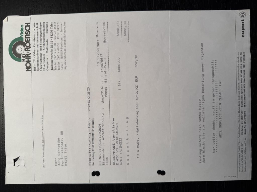 Diverse Tests sprechen für sich. Nur Abholung gegen Vorkasse oder Barzahlung in Trier. Rechnung von Kohr & Roensch Vertretung in Trier. Gerät war eher wenig in Gebrauch, da zweites Musikzimmer /Kino vorhanden. Bei Fragen bitte schreiben.