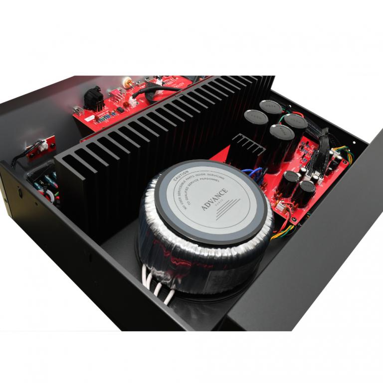 - Aufwändiger Aufbau innen mit großem Ringkern-Transformator und selektierten Bauteilen