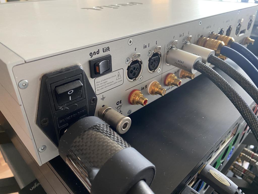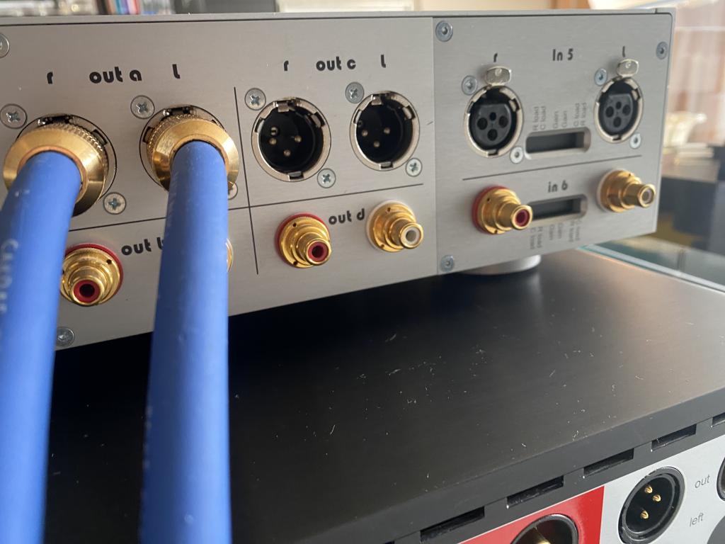niedrigen Ausgangs-Widerstand. 2xKanal RCA (WBT) und 2xKanal XLR (Neutrik) Eingänge.