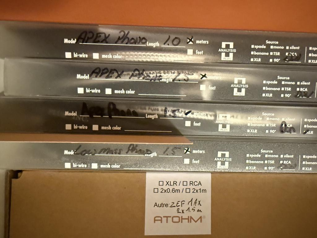 Analysis Plus Silver Apex Interconnects RCA 1,5m - es sind auch andere Längen, sowie XLR NF und Phono Kabel XLR/DIN in verschiedenen Längen, jeweils sowohl neu als auch aus der Demo verfügbar - Details siehe Text