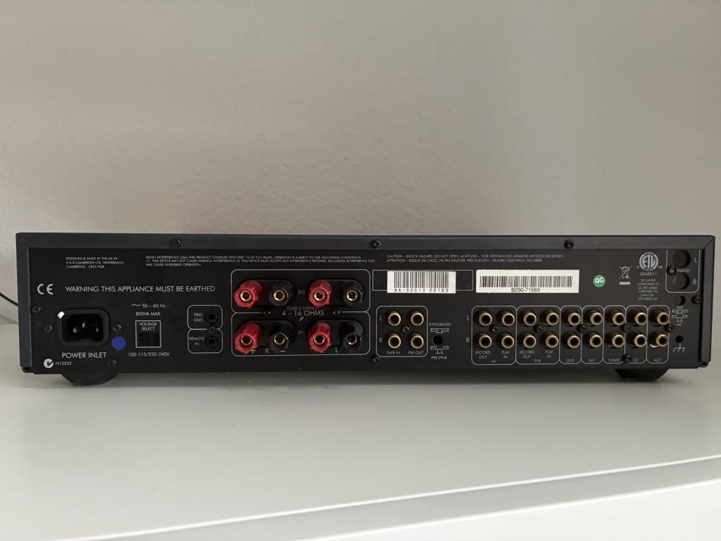 hochwertiger Verstärker, sehr stabil, sehr gut verarbeitet, Klangtuning durch Bridge Audio (damaliger Deutschand-Vertrieb von Arcam), 2x100W/8Ohm, 5 Audio-Eingänge, 2x Tape, kein Phono, Lautstärkeregelung am Gerät hat Aussetzer, Lautstärkeregelung über FB einwandfrei