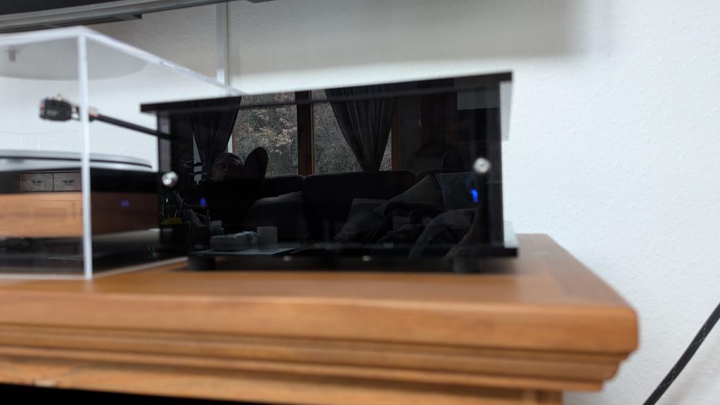 Die Frontplatte mit dem ASR - Schriftzug wurde gegen eine neutrale ausgetauscht. Gleichzeitig wurde auch der On/Off-Schalter entfernt. Dies hatte rein ästhetische Gründe, da mir der Schriftzug auf der Front nicht gefallen hat. Ein Rückbau ist selbstverständlich kein Problem, müsste allerdings vom Käufer mit Herr Schäfer von ASR besprochen werden.