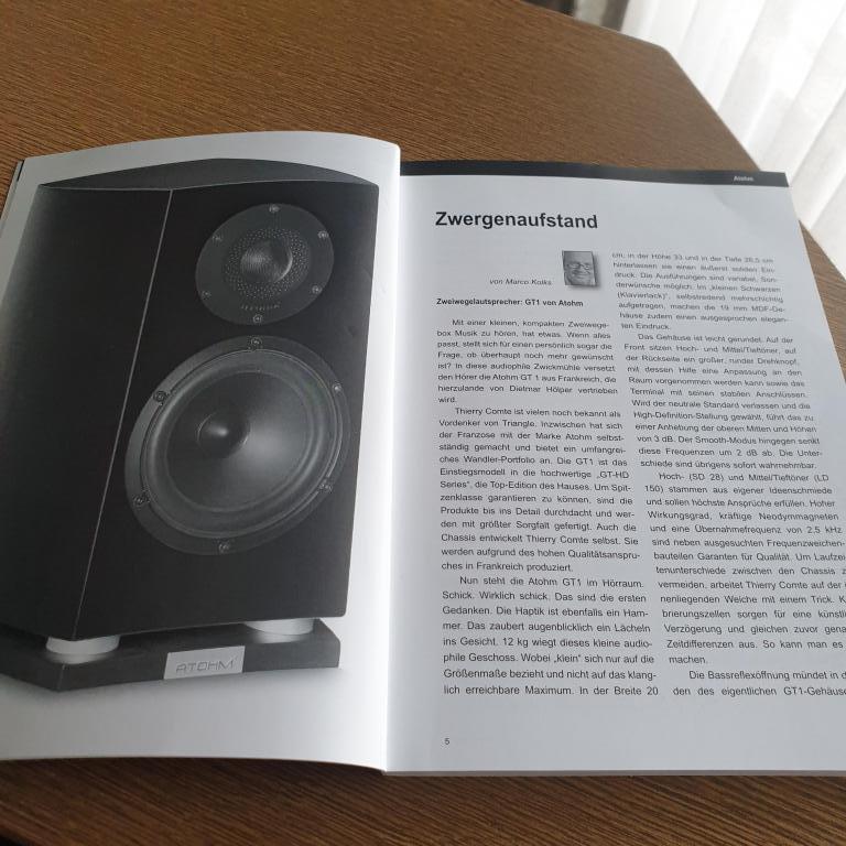 Für audiophile Kenner die GT-1 vom französischen Hersteller ATOHM ein vollständig handgemachtes Kleinod für deutlich unter 3.000 €/ Paar. "Der kleine Franzose GT1 ist etwas für audiophile Enthusiasten. Denn er lässt den Hörer in Musik versinken. Läuft er klanglich bei sehr guten Aufnahmen zur Höchstform auf, bleibt die Zeit stehen."