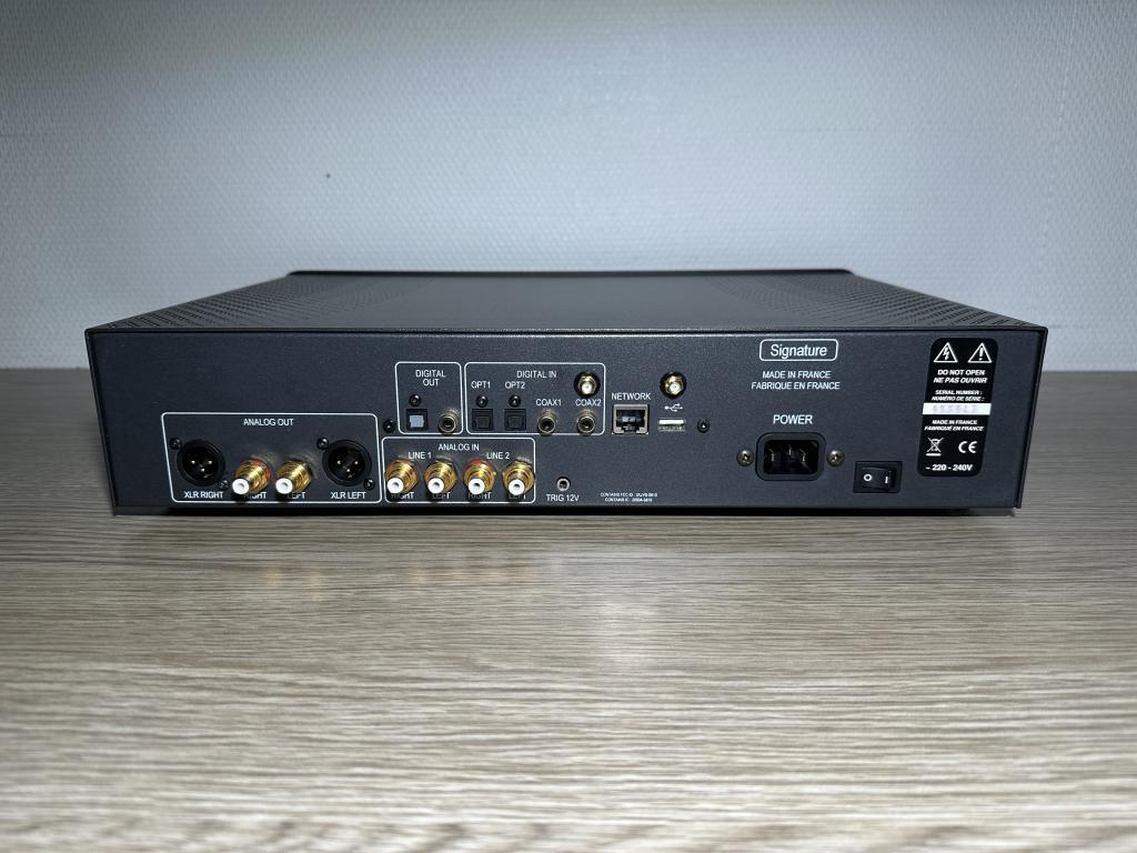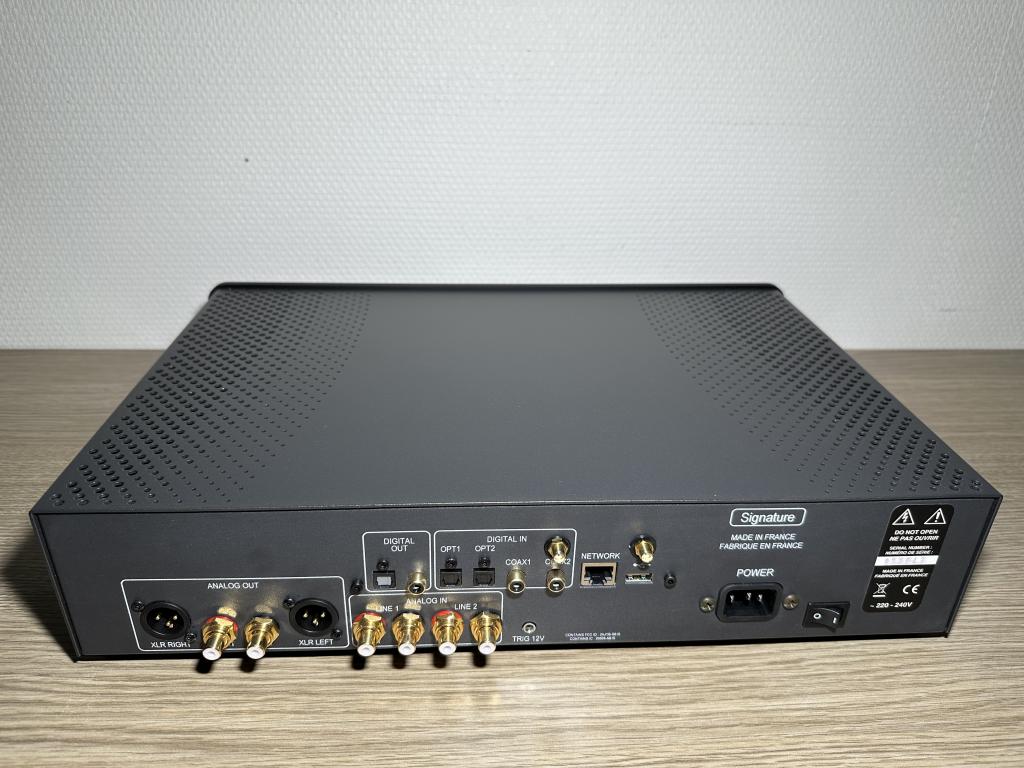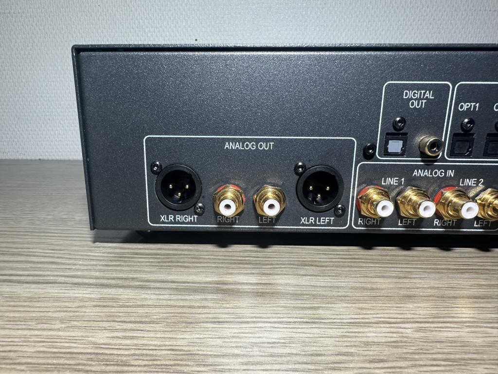 Mit seinen dual 24 Bit / 192k Convertern und analogen Lautstärkesteller-Bausteinen, je einen pro Kanal ist er vollsymmetrisch aufgebaut. Die diskret aufgebaute Class-A Ausgangsstufe ist so potent daß sie jede Endstufe oder Aktivbox mit ausreichend Leistung versorgen kann.