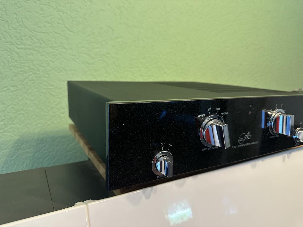 Der Verstärker wurde gleich nach dem Kauf auf das Größere Modell durch den Entwickler umgerüstet . Es wurde eine weitere hochwertige 500 Watt Burmeister Trafo eingebaut . P12 hat 1x 500 Watt Trafo , P112 2x 500 Watt Trafo . Die Sicherungen wurde durch hochwertige feinsicherung ersetzt.