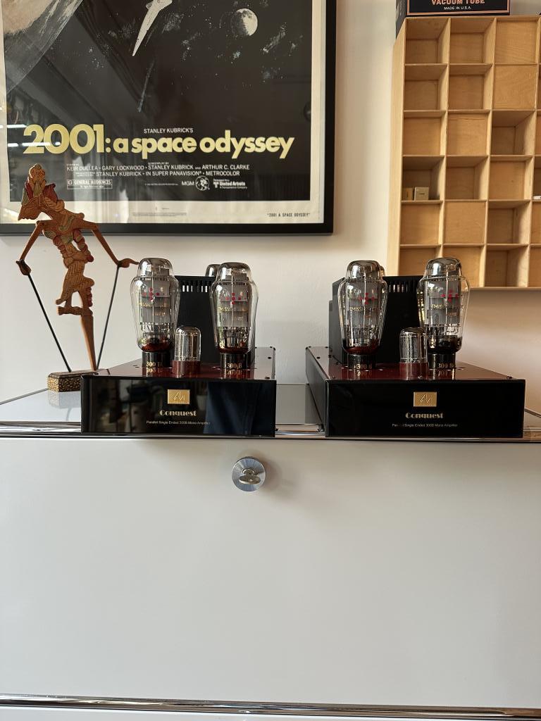 Zum Verkauf steht hier der Audio Note Conquest (Level 3-neueste Generation), ein Mono-Endverstärker mit den bekannten 300B Trioden mit ingesamt 2x18W in Class A.
