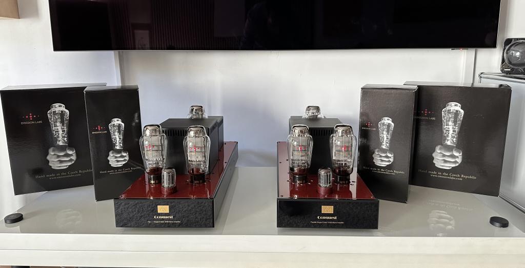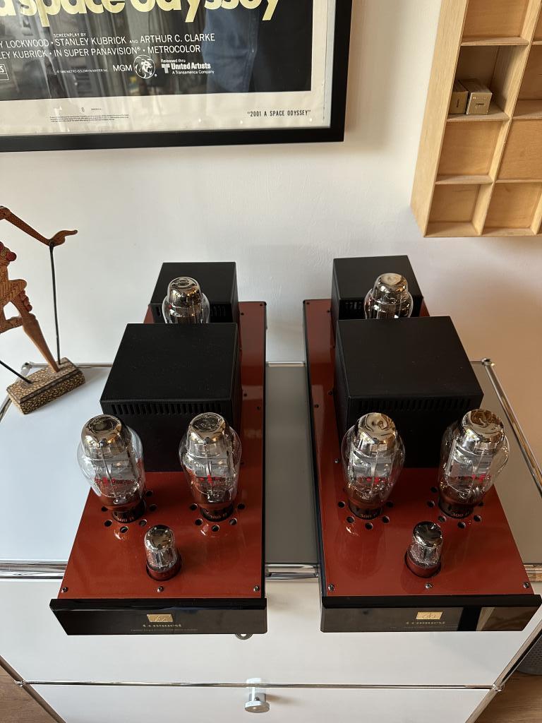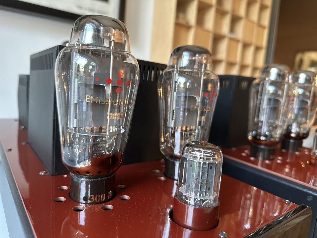 Es werden hochwertige 300B Röhren (4xStück) sowie Gleichrichterröhren 5U4G (2xStück) von Emission Labs aus 2024 mit Rechnungen und entsprechender Garantie im Wert von über 2500EUR mitgeliefert, die den Verstärker ggü. den Standard-Rohren nochmals feiner auflösen lassen. Weiterhin sind NOS-Treiberröhren von RCA (5692) installiert.