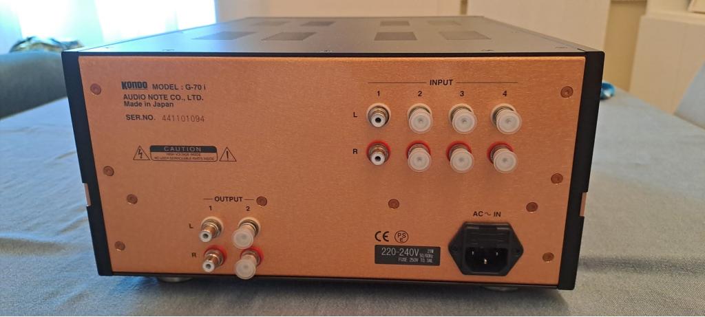 Here on sale a Kondo G70 I tube preamplifier totally as new. It comes with all accessories , Kondo Avocado power cable, manuals, all packaging included, outer shpping box. One owner. No exchanges.Audition available. Regular Italian import. Bought 2022. Shipping worldwide. Paypal add 4,5%. Thanks for viewing.