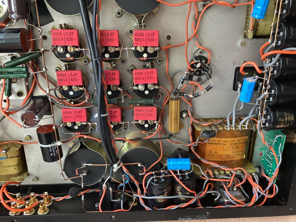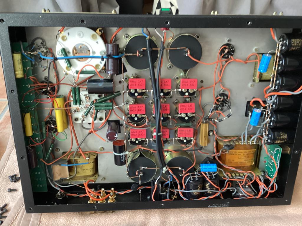Well i didn't want to use 10 or more tubes per channel to get power but get power only when you need in fortissimos so i marry a big pentode (813) in triode mode and one of the best triode emission tube (211) this one works till 17 watts and when cut off comes he merges with the 813 and together they developping 60 watts during the time of the peaks all in triode mode single ended and becomes together ONE tube !! All in class A (360°) . Problem with triode in class A mode we only can expect 38% of efficiency! I resolved this with this system. Dynamics and defenition are exceptional ! I call them ULTIMA because in tube amplifaction we can't go and do. better. Also this name to tell that this is my last will before my death"