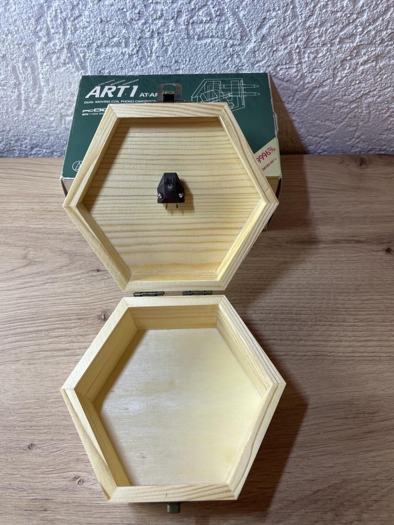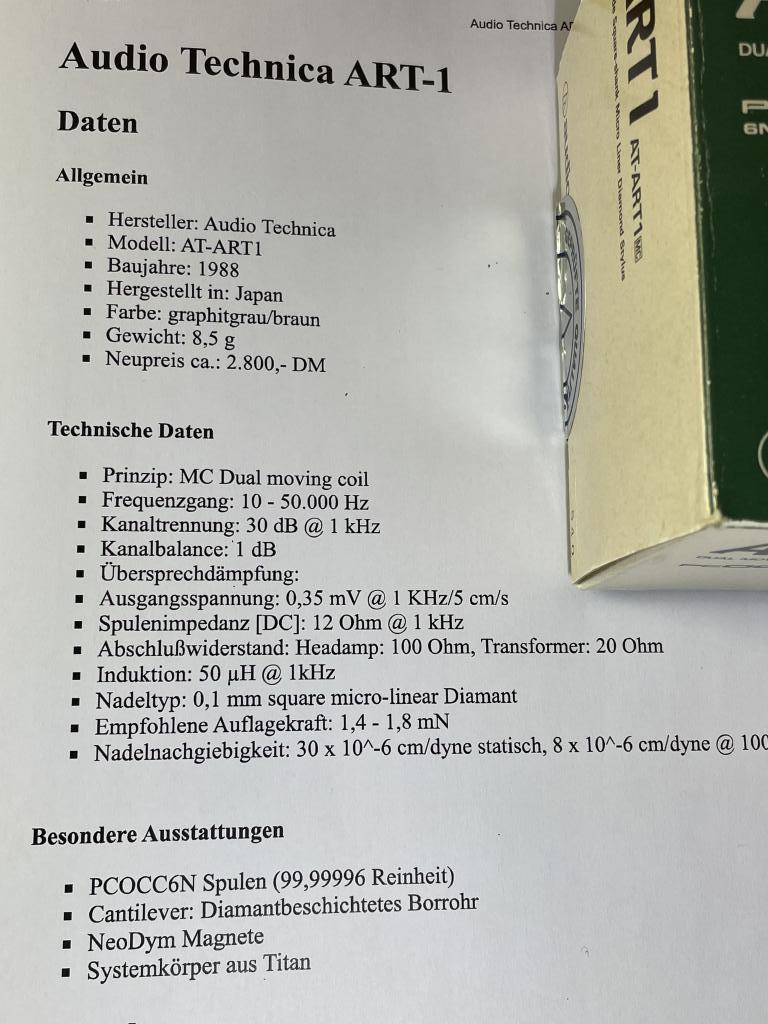 Das AT-ART1 ist voll funktionsfähig und auch optisch in einem schönen Zustand, siehe Fotos. Die Originalverpackung (OVP) ist vorhanden. Der Tonabnehmer ist sicher in einer schönen Holzdose verschraubt.