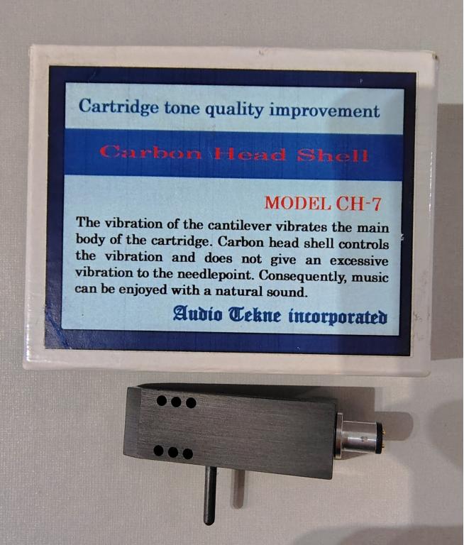 Hello, very rare Audio Tekne head shell, graphite body for optimal damping and vibration free, with azimuth setting facility, weight about 16 grams, never used. It comes with a set of brand new Ortofon gold plated lead wires. Shipping included in Europe. Thanks for watching.