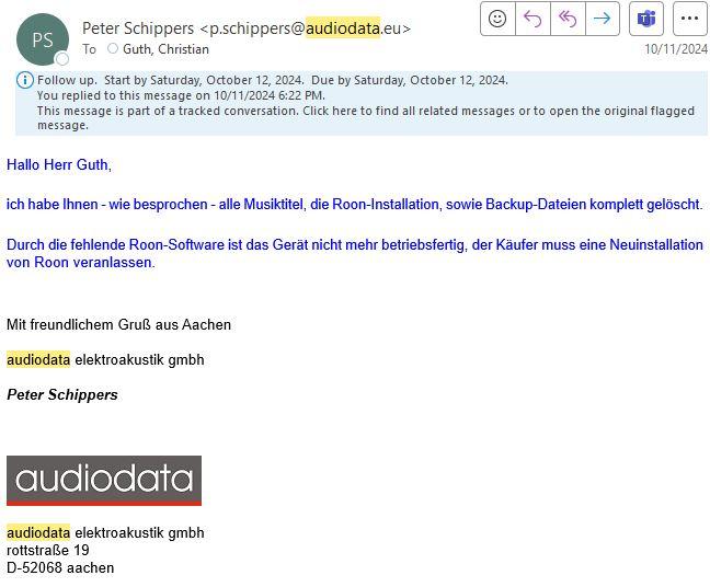 2024 von mir wegen Umzug von Herrn Schippers (Audiodata) persönlich zurückgesetzt. Steht jetzt zum Verkauf.