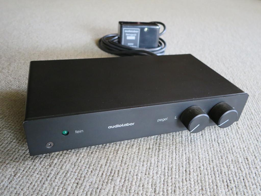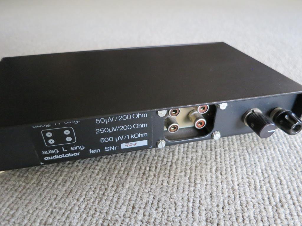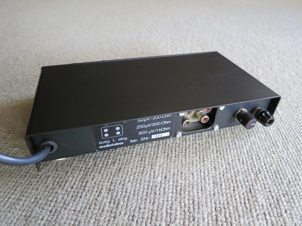 Angeboten wird eine High End MC-Vorstufe der Spitzenklasse im 1A-Zustand. Lediglich das externe Netzteil enthält geringe Gebrauchsspuren. Der Phonoverstärker arbeitet gleichzeitig als Vorverstärker. Aufgrund der regelbaren Ausgangsleistung und der RIAA-Entzerrung kann er direkt an AUX oder andere Hochpegeleingänge (auch an regelbare Endstufen) angeschlossen werden. Nähere Beschreibung und technische Daten s. www.audiolabor.de. Damit erübrigt sich die Anschaffung eines Vorverstärkers mit Phonoteil. Mit dem Drehschalter auf der Rückseite ist die Anpassung an verschiedene Abtastsyteme (auch MC high output) möglich. Sehr offenes und klares Klangbild. In den 80er Jahren von Audiolabor für 1000 DM angeboten, ist sie heute als Upgradeversion von Brinkmann für 1500 € zu haben.