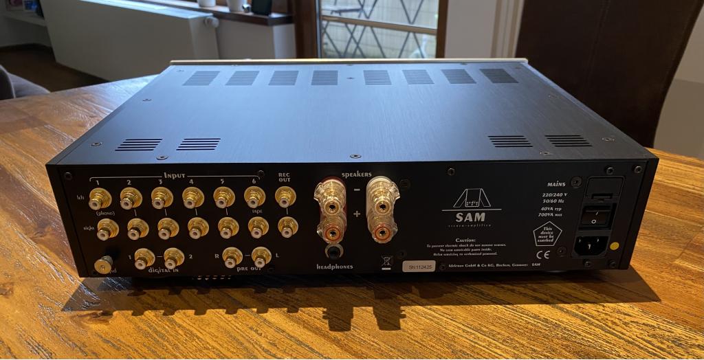 Der Audionet SAM V2 weist keine Beschädigungen, Kratzer oder Gebrauchsspuren auf und befindet sich in einem perfekten absolut neuwertigenZustand. Es handelt sich um die letzte Version mit Drehknöpfen! Im März 2019 wurde das Gerät beim Service-Audio.net Upgraded auf Sam G2/20 SE Niveau, inklusiv Rhodium Sicherung und kompletter Durchsicht und Reinigung. Nun lässt sich auch über die Audionet Vollmetal Fernbedienung RC1(nicht Bestandteil des Angebots) die Lautstärke, Eingangswahl und die Mute taste betätigen. Preis VB.