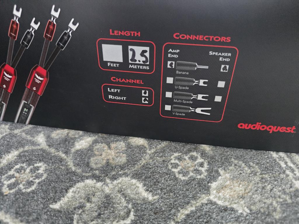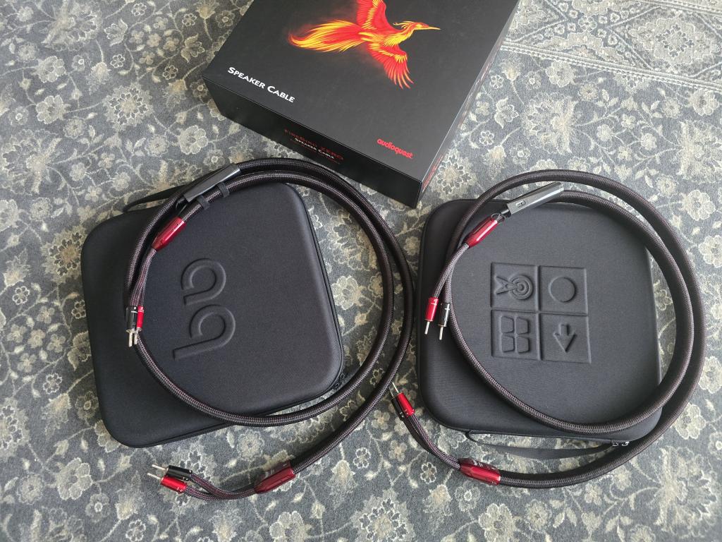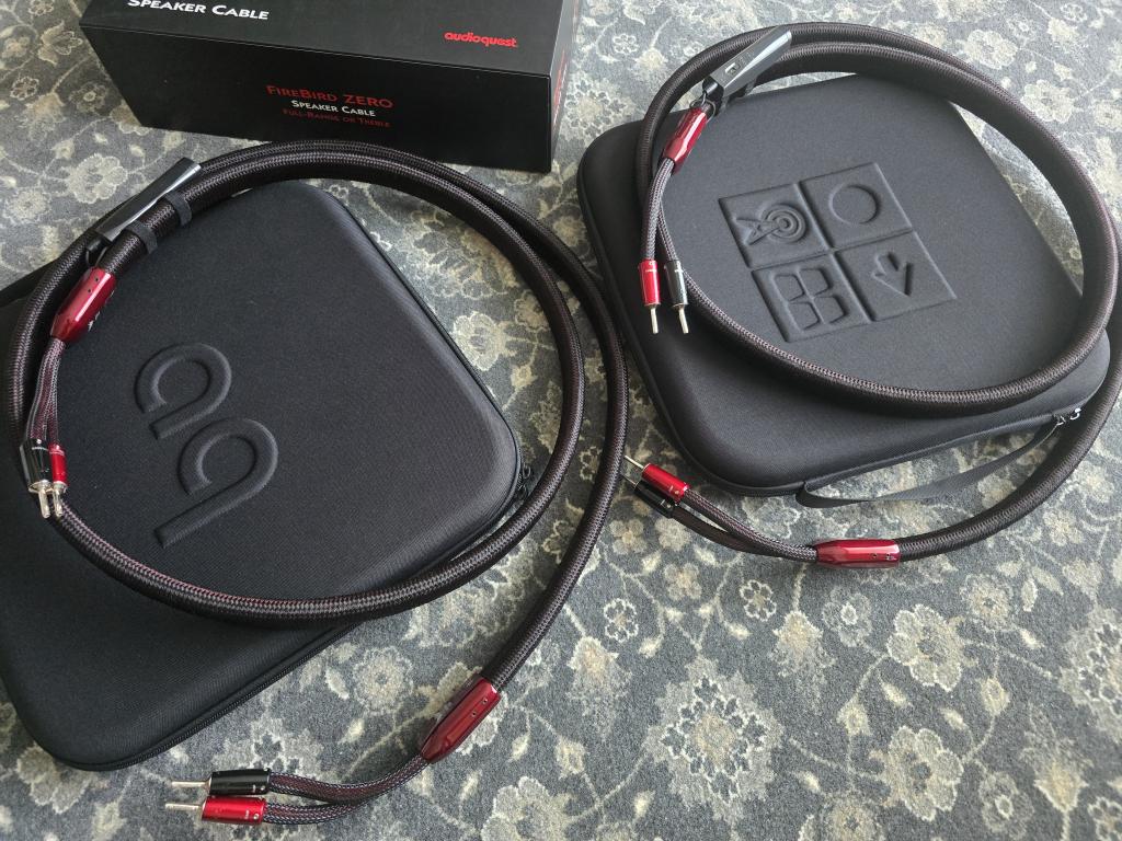 For sale one pair of AudioQuest Firebird ZERO 2.5m speaker cables in a fantastic condition, it has the original spade connectors, complete with the original packaging and all accessories.