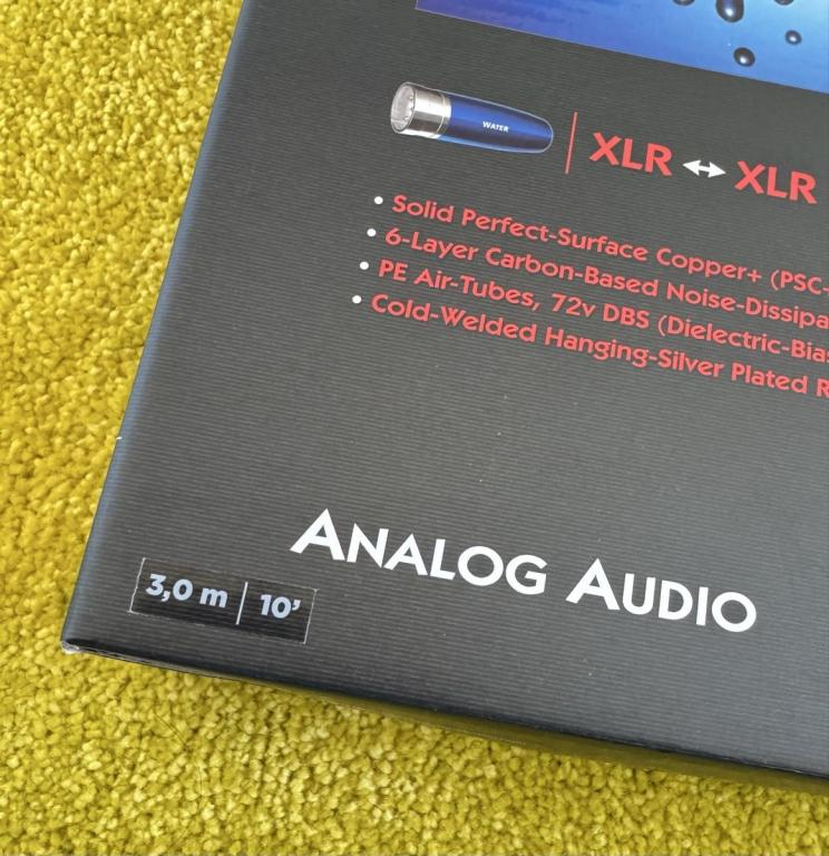 Offering a genuine pair of AudioQuest Water XLR cables. These are a significant step up in the Elements series, utilizing high-purity PSC+ copper and active 72V DBS packs to reduce timing smear.