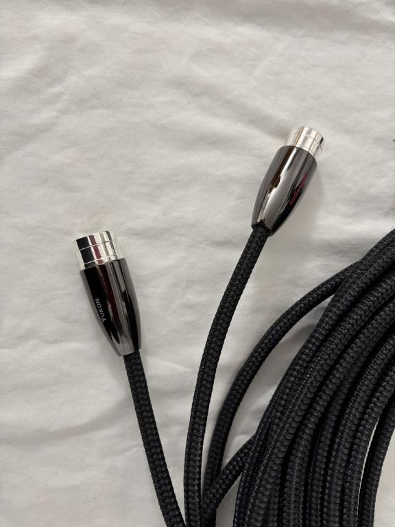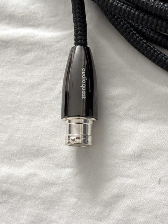 Ich verkaufe ein Paar Yukon XLR-Kabel von audioquest, Länge jeweils 8m. Der Zustand der Kabel ist sehr gut, die Funktion ist einwandfrei, die Stecker haben Gebrauchsspuren, 1 Stecker mit Abnutzung der Schrift etc. (s. Bild).