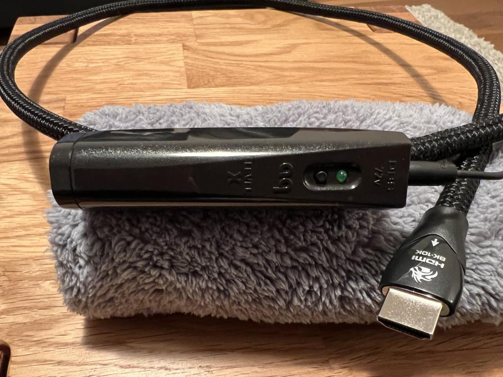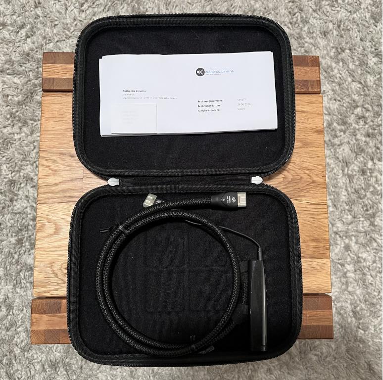 Biete aufgrund einer Systemumstellung ein neuwertiges AudioQuest Dragon 48 rein Silber Audio HDMI Kabel, neueste Version mit Level- X DBS System. Die Länge beträgt 1m, die Originalverpackung und das Case sind dabei. Nichtraucher Haushalt. Das Kabel stammt aus dem deutschen Vertrieb, die Rechnung vom 29.06.2024 wird als Herkunftsnachweis selbstverständlich mit übergeben.