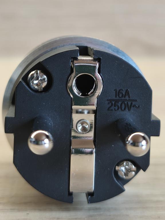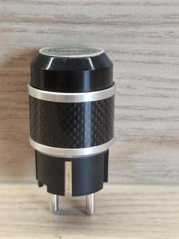 Anschlussstecker mit Carbonfaserummantelung und rhodium-platinierten Steckkontakten.