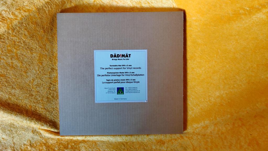 Das verstehen wir besser, wenn wir betrachten, was sie nicht macht. Sie versucht nicht wie alle weichen Materialien Energie durch elastische oder plastische Verformung aufzunehmen. Sie versucht auch nicht wie die meisten harten Materialien durch Interferenzauslöschung oder Gegenfärbung zu einem neutralen Klangbild zu gelangen. Diese Methoden führen einfach zu Informationsverlust, oft auch zu komprimiertem, schmalbandigem, verschmiertem, intransparentem und undynamischem, räumlich begrenztem Klangbild. Nachgiebige Matten reduzieren die verfügbare Dynamik der Schallplatte. Deshalb ist die DÄD!MÄT hart. Unter der dünnen Haut liegt eine harte Schaumschicht aus feinen Bläschen. Die hauchdünnen Wände der Bläschen können eingespeiste Energie durch Verformung aufnehmen und in Wärme verwandeln, ohne die stabile Form der DÄD!MÄT und damit die feste Unterstützung der Schallplatte zu schwächen. Natürliche Klangfarben, mehr Information, Transparenz, Dynamik, Körper und Raum sollten der Lohn sein. Ob und in welchem Maß das gelingt, werden Sie sicher feststellen. Viel Spaß dabei!