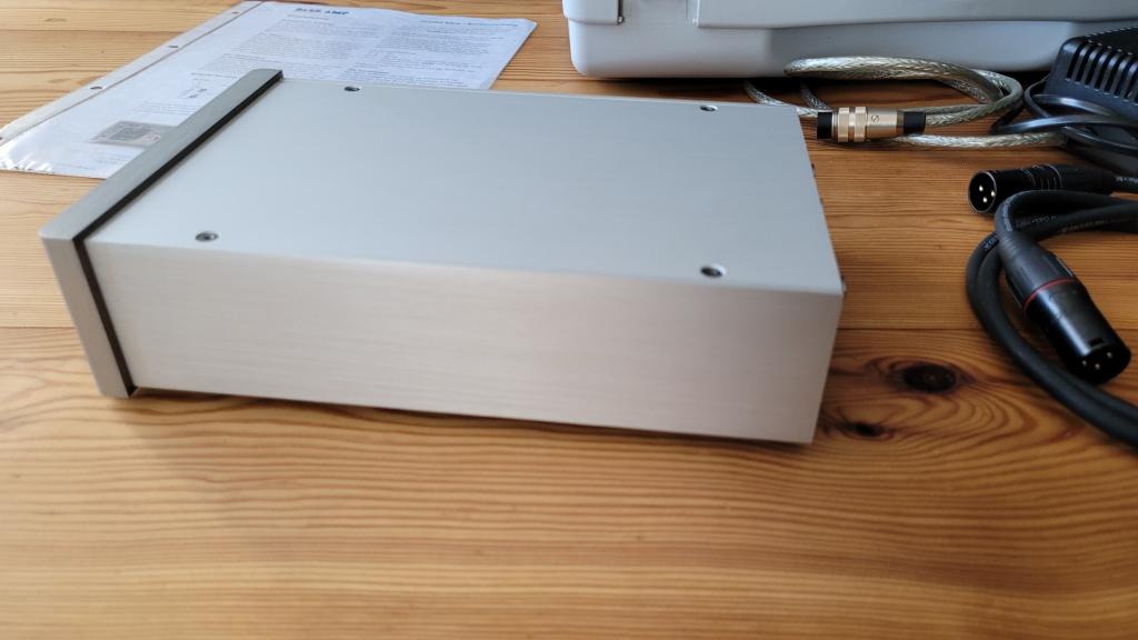 Verkauft wird mir OVP (Hardcase) original Netzteil, Bedienungsanleitung und zwei mal hochwertige Varianten Kabel für den Plattenspieleranschluss.