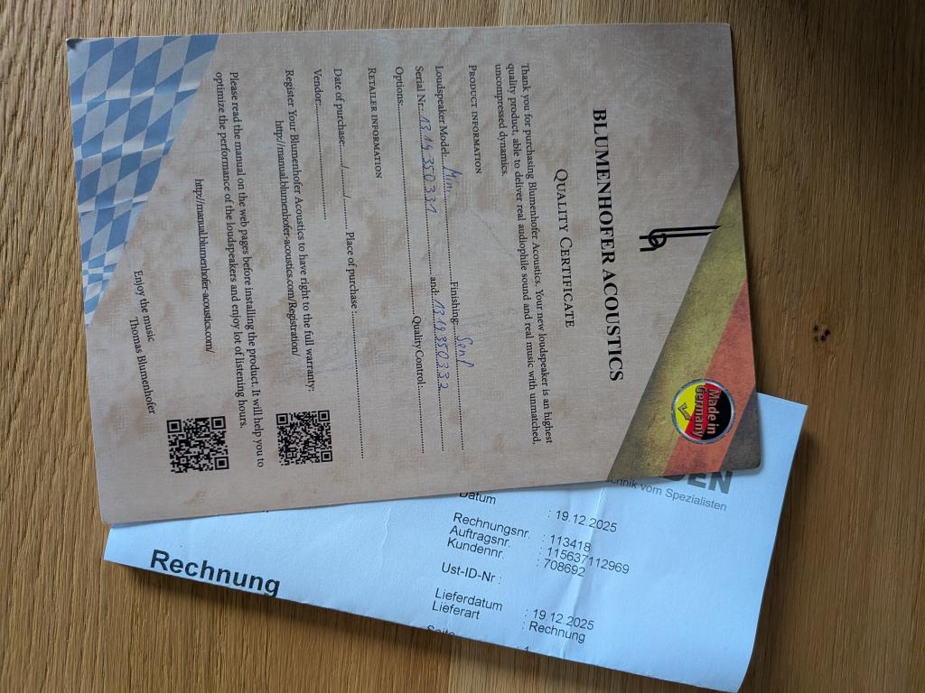 Original Rechnung und Blumenhofer Zertifikat ist natürlich dabei, wie auch die OVP.
