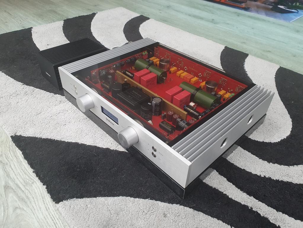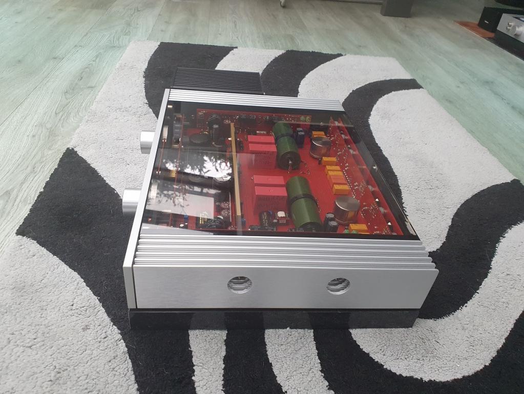 Wie unser Marconi Vorverstärker und der Nyquist Streaming-D/A Wandler sorgt eine raffinierte Hybridschaltung, die das Signal mittels Transistoren und selektierten Telefunken NOS-Röhren verstärkt, für optimalen Klang. Die RIAA Entzerrung ist teils als Anodenlast, teils als Gegenkopplung ausgeführt. Die Phaseninversion für die symmetrischen Ausgänge erfolgt über eine dritte Röhrenstufe.