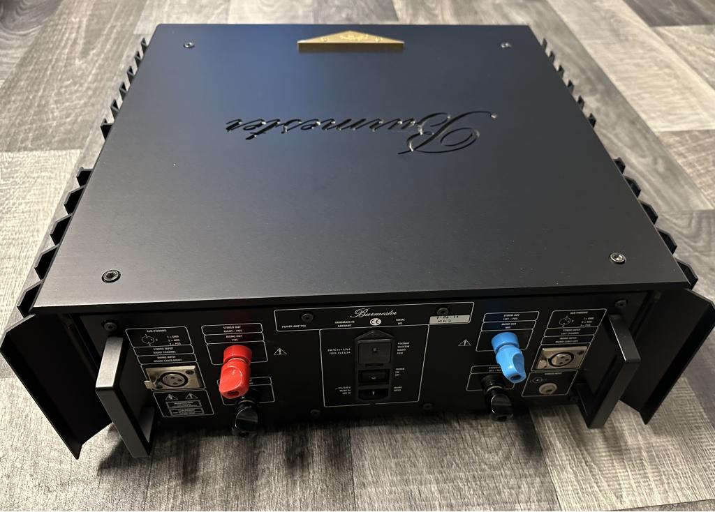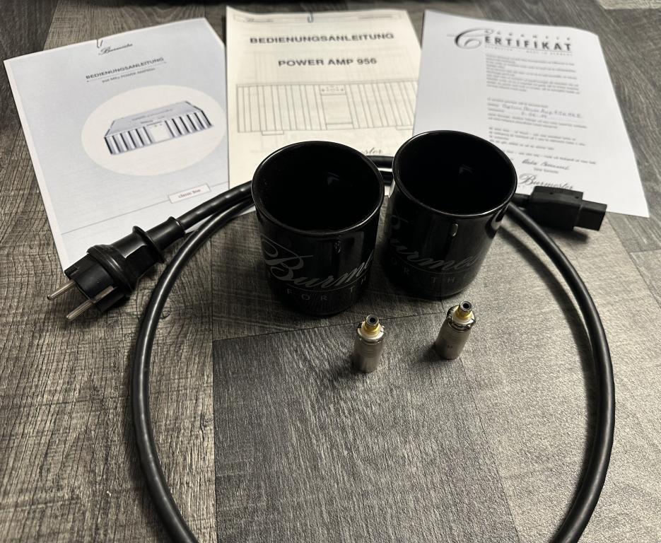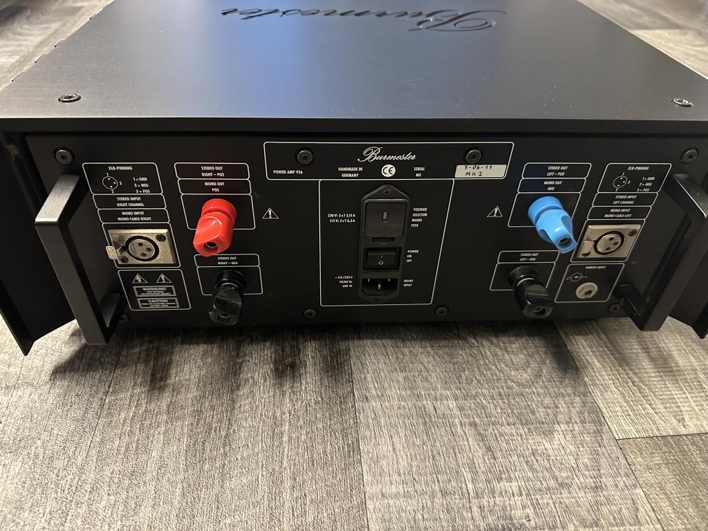 Der Burmester 956 MK2 ist ein Stereo-Endverstärker mit den Maßen 480x185x482mm (BxHxT) und einem Gewicht von ca. 31kg. Er leistet 2x240W an 4 Ohm und ist vollkommen symmetrisch und DC- gekoppelt aufgebaut. Zu den technischen Merkmalen gehören ein überdimensioniertes Netzteil mit einem Ringkerntrafo von 600VA und eine lokale Siebung von 12.000uF pro Kanal.