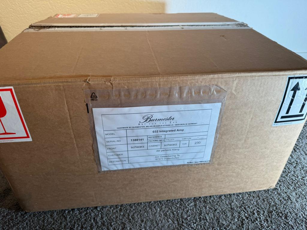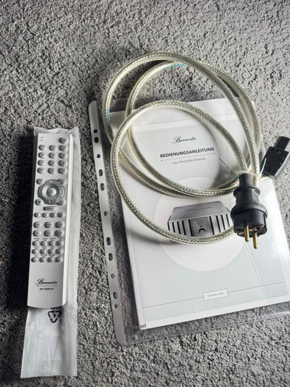 Im Lieferumfang enthalten ist: Burmester 032, Netzkabel, Fernbedienung und die originale Verpackung.