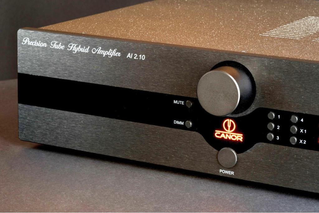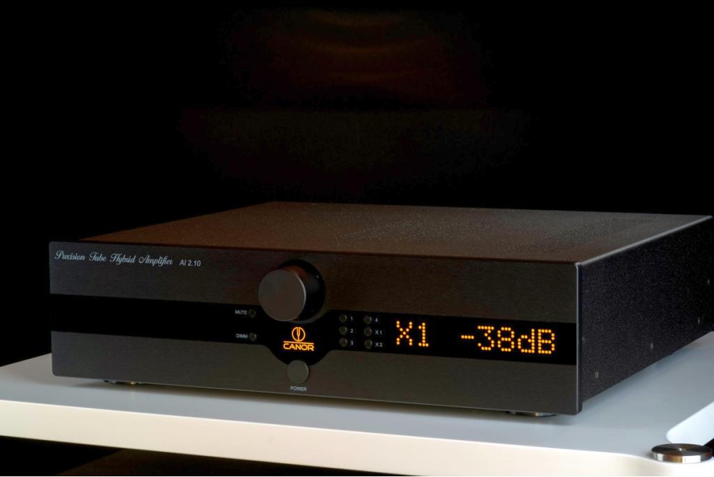 Canor AI 2.10 Hybrid-Vollverstärker mit einer Ausgangsleistung von 2 x 150 Watt an 4 Ohm und 2 x 100 Watt an 8 Ohm.