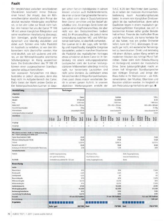 Der Verstärker hat viele sehr gute Testberichte erhalten (siehe www...).