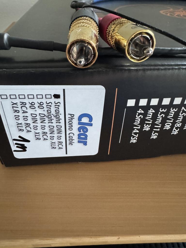Verkaufe wegen Umstieg auf beidseitiges RCA Phonokabel mein erst vier Wochen altes Cardas Clear Phonokabel in der werkseitigen Konfiguration DIN gerade auf Cinch.