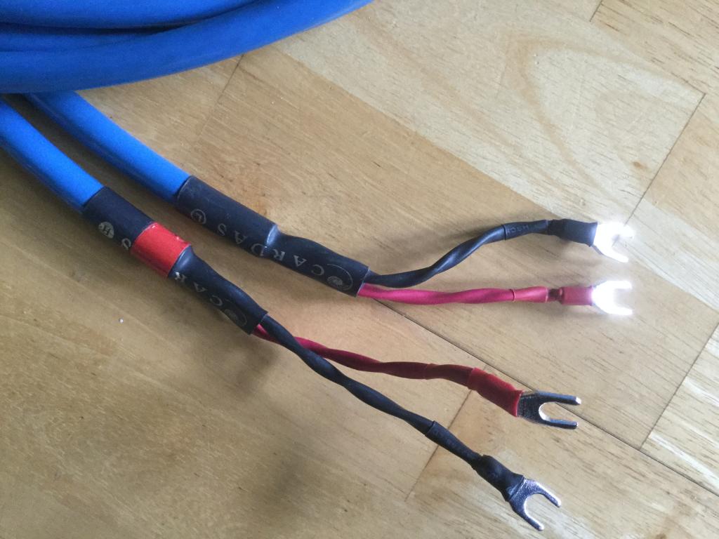 2 X 5 Meter mit beidseits rhodierten Kabelschuhen, 8mm Innendurchmesser, sehr fein, sauber und musikalisch klingendes Kabel, guter optischer Zustand
