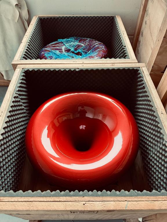 Die Fotos der Kisten, der roten Hörner sowie der verpackten Gehäuse wurden kürzlich gemacht.