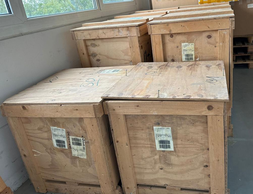 Die Lautsprecher wurden 2021 gekauft. Seitdem sind die vier Holzkisten trocken gelagert in vier Holzkisten in einer Halle.