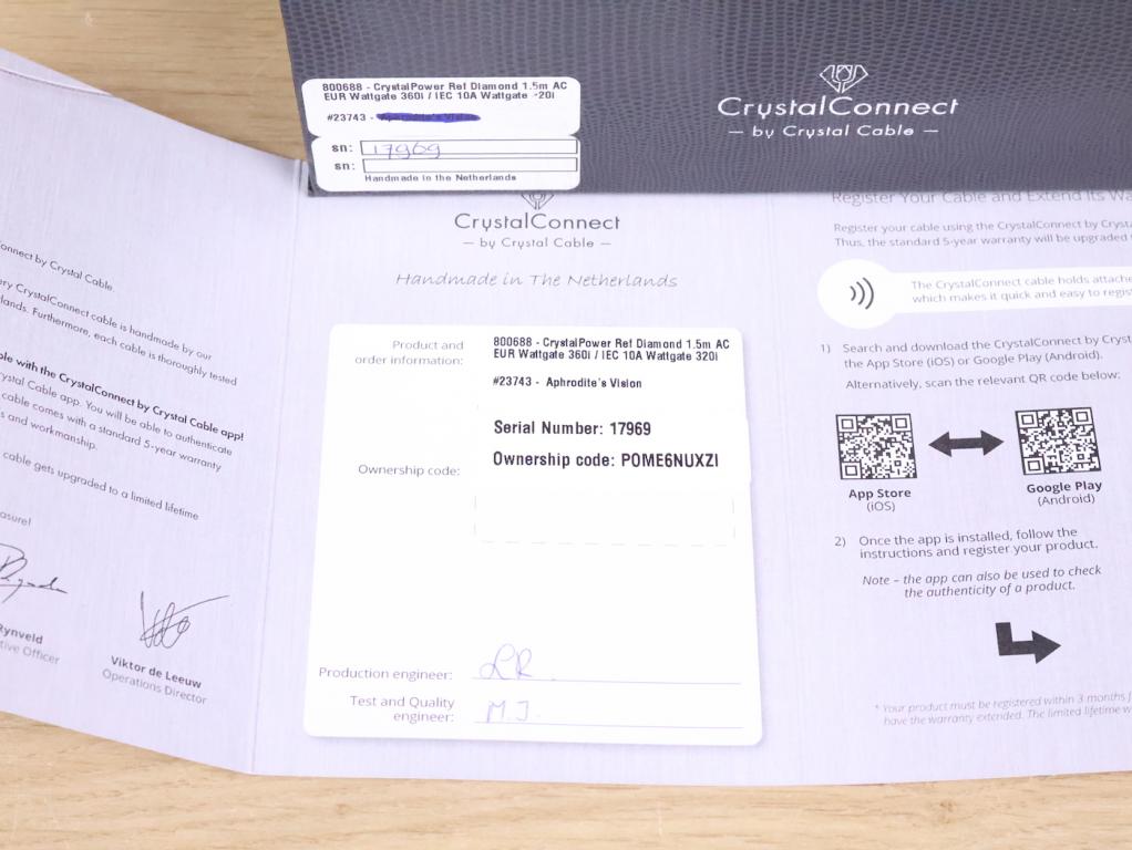 One Crystal Cable Reference Diamond high end audio power cable in a very good condition. The length is 1,5 metre and it has the original connectors (EU wall type and C15 IEC). Serial number is 17969. Retail price is 1.895 euro. The original box and certificate are included. Check our other listings for more interesting items. Free shipping worldwide!
