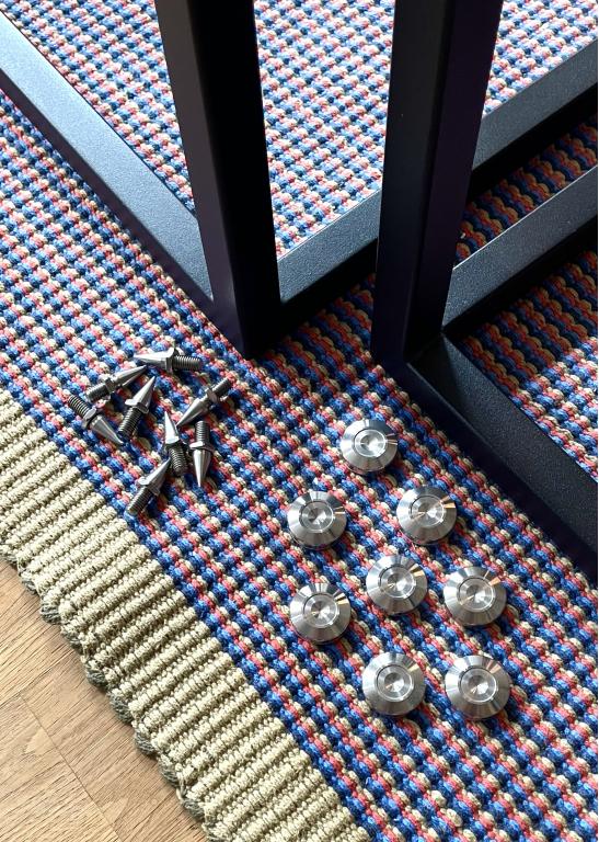 Mit schraubbaren Spikes (Neupreis 24€) und hochwertigen Unterlegscheiben (Neupreis 75 €).