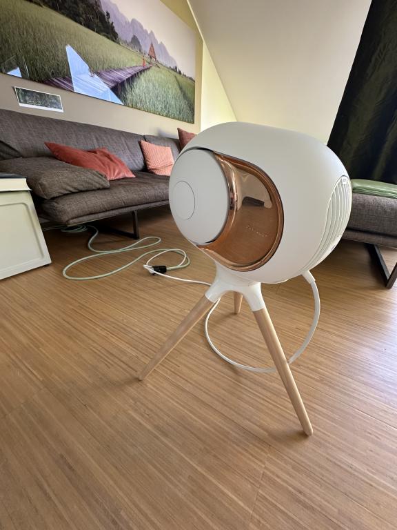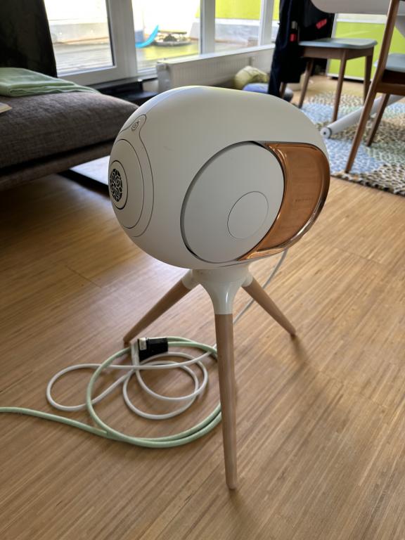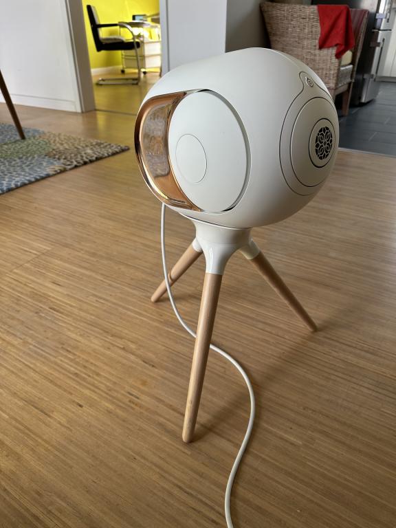 Zum Verkauf steht mein Devialet Phantom I 108 dB Gold inkl. Original 3‑Bein‑Standfuß „Devialet Treepod Standfuß für Phantom I / Phantom Ultimate 108 dB."