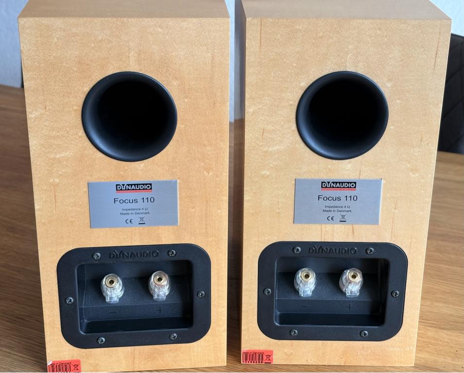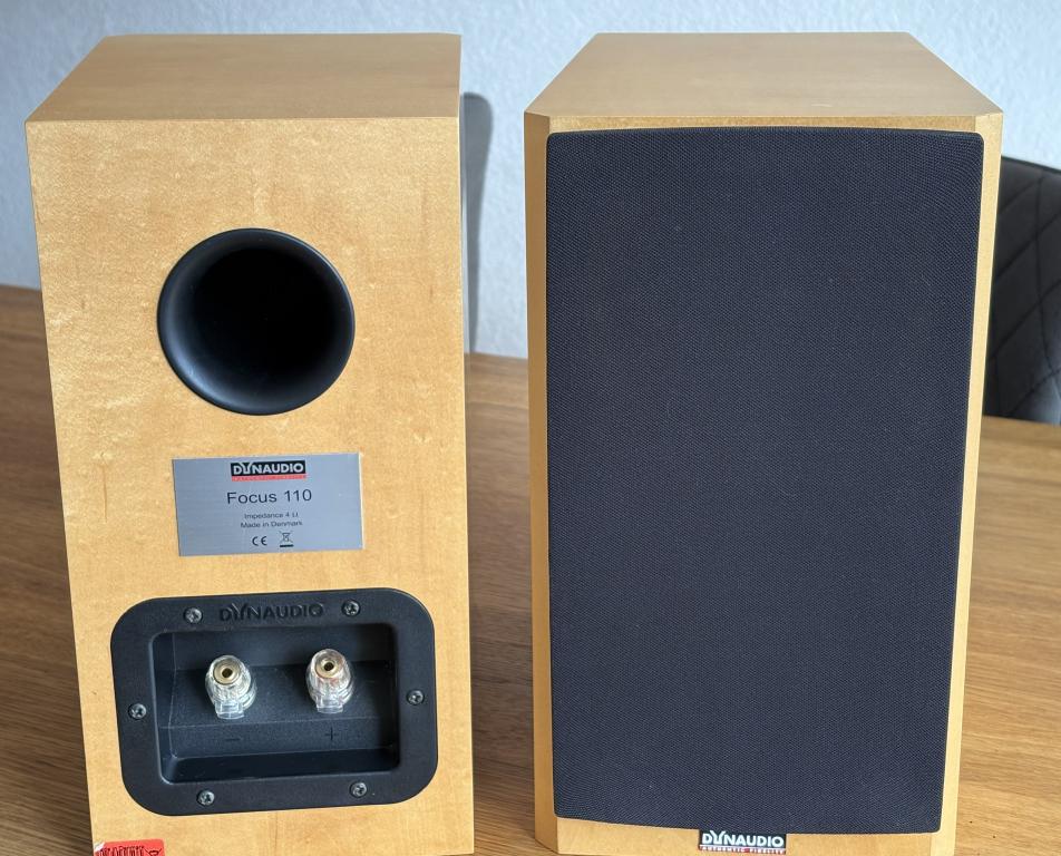 Ein Paar Dynaudio Focus 110 in Ahorn (marple) in einem sehr guten Zustand. Keine auffälligen Kratzer oder Gebrauchsspuren aus einem rauchfreiem Haushalt