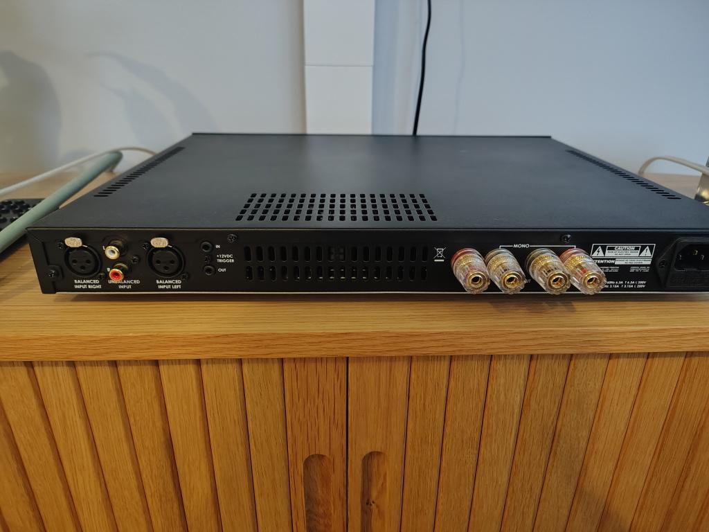 For sale is an Elac power amplifier. It can be used as a stereo power amplifier or a mono power amplifier. XLR and RCA inputs.