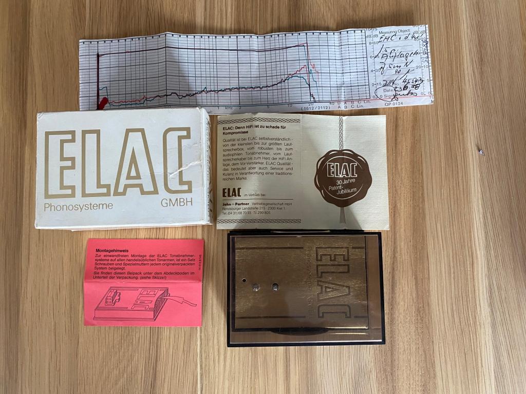 Angeboten wird das Elac EMC v.d.H, welches trotz des Alters im perfekten Zustand ist. Es war das absolute Spitzensystem des Herstellers ELAC, und wurde lediglich zum Test in den Plattenspieler eigebaut. Es rangierte oberhalb von EMC 1 und 2. Die Abtastfähigkeit entspricht mit 90 µ dem Original Datenblatt. Unterlagen wie Messschrieb und OVP sind dabei.