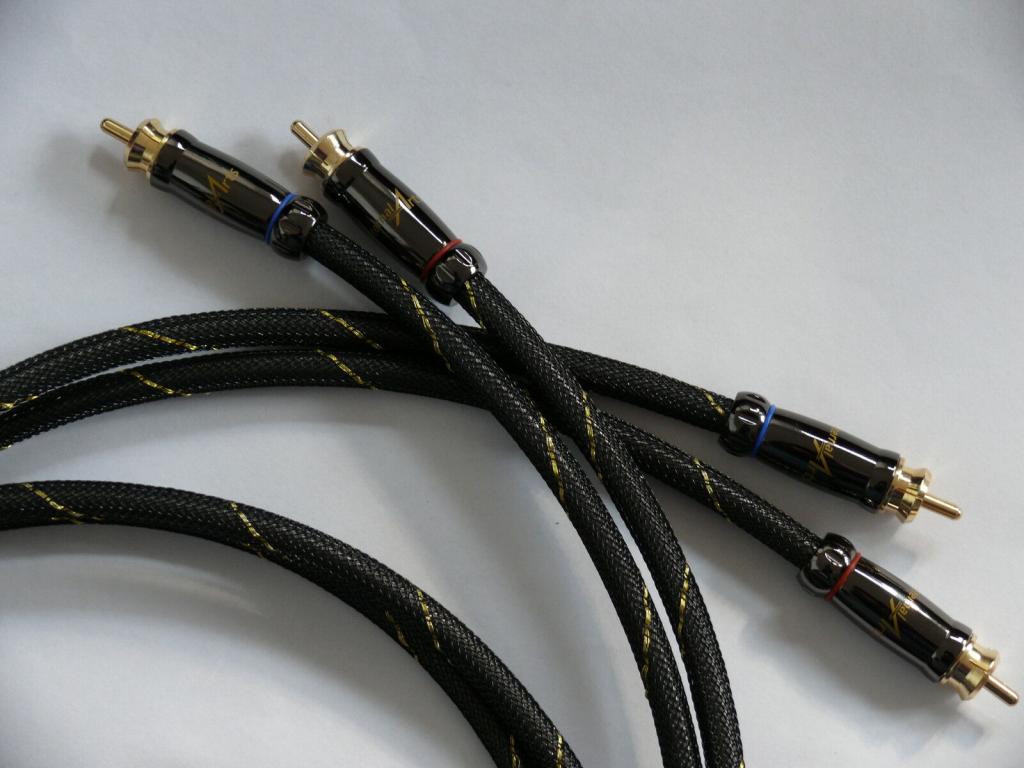 Aufwendig aufgebautes, mit Al-Folie geschirmtes extrem verlustfreies Low-capacity-Kabel mit hochwertigen, vergoldeten Cinchsteckern. Stecker zur Zugentlastung vergossen.